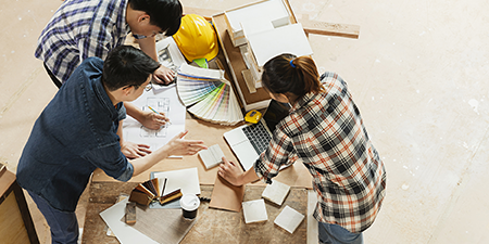 主に壁の取り付けや壁紙や床のフローリングなどの貼り付け、天井の仕上げなどの工事をします。