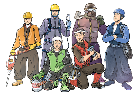 建物の壁や床などを専用のコテを使って塗って仕上げていく仕事です。ペンキやタイルの下地塗りをはじめとして、土間打ちや階段の仕上げなど様々な場所で左官工事は必要になってきます。建物の美観を大きく左右するために熟練した技術が求められてきます。